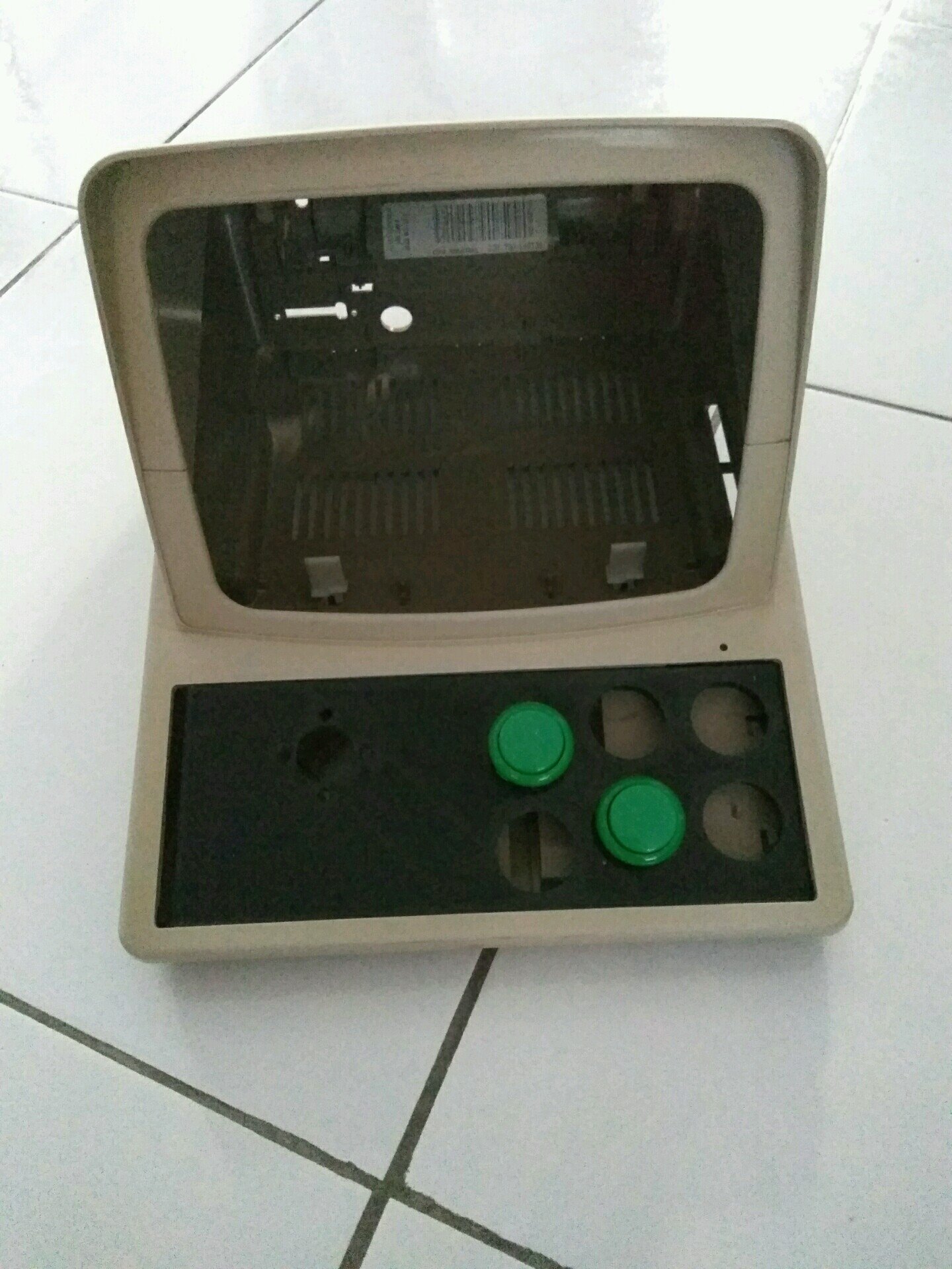 Pour résumer grossièrement son travail, Jérôme a transformé un minitel en Tabletop/mini Bartop en remplaçant l’écran cathodique par un LCD 4/3, implantant un Raspberry Pi 3 avec une RecalBox, un stick arcade et des boutons. Il lui a donné un très beau look Astro City, borne emblématique de chez SEGA.