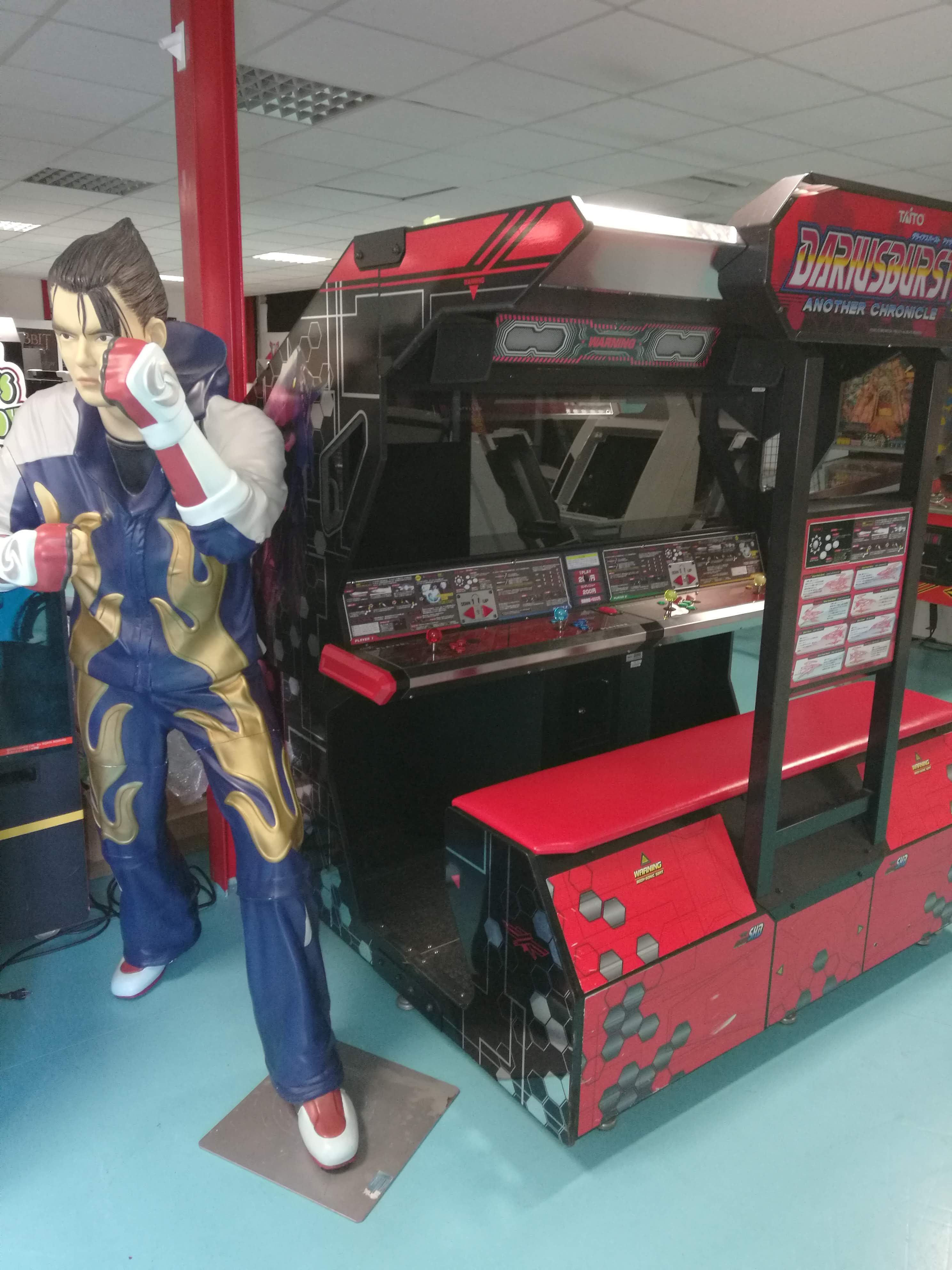 Mais notre attention c’est vite portée sur une gigantesque borne Taito double écran pour 4 joueurs Darius Burst EX. Pour être franc, ce n’était plus des étoiles mais des galaxies que nous avions dans les yeux ! Après être resté en mode béatitude pendant quelques minutes devant, nous avons entendu la voix de l’une des employée : « Bon ! tant que vous êtes là, vous allez bien faire une petite partie « . Vous vous doutez aisément que nous ne nous sommes pas fait prier et que dès que la borne fut lancée nous étions en place pour empoigner le joystick, tambouriner les boutons et tenter d’éradiquer les ennemis  venus de l’espace. Pendant un quart d’heure nous avons profité à fond du son puissant et du gameplay aux petits oignons de ce jeu avant de devoir redevenir raisonnables et de repartir car plusieurs heures de route nous attendaient encore pour retourner chez nous.