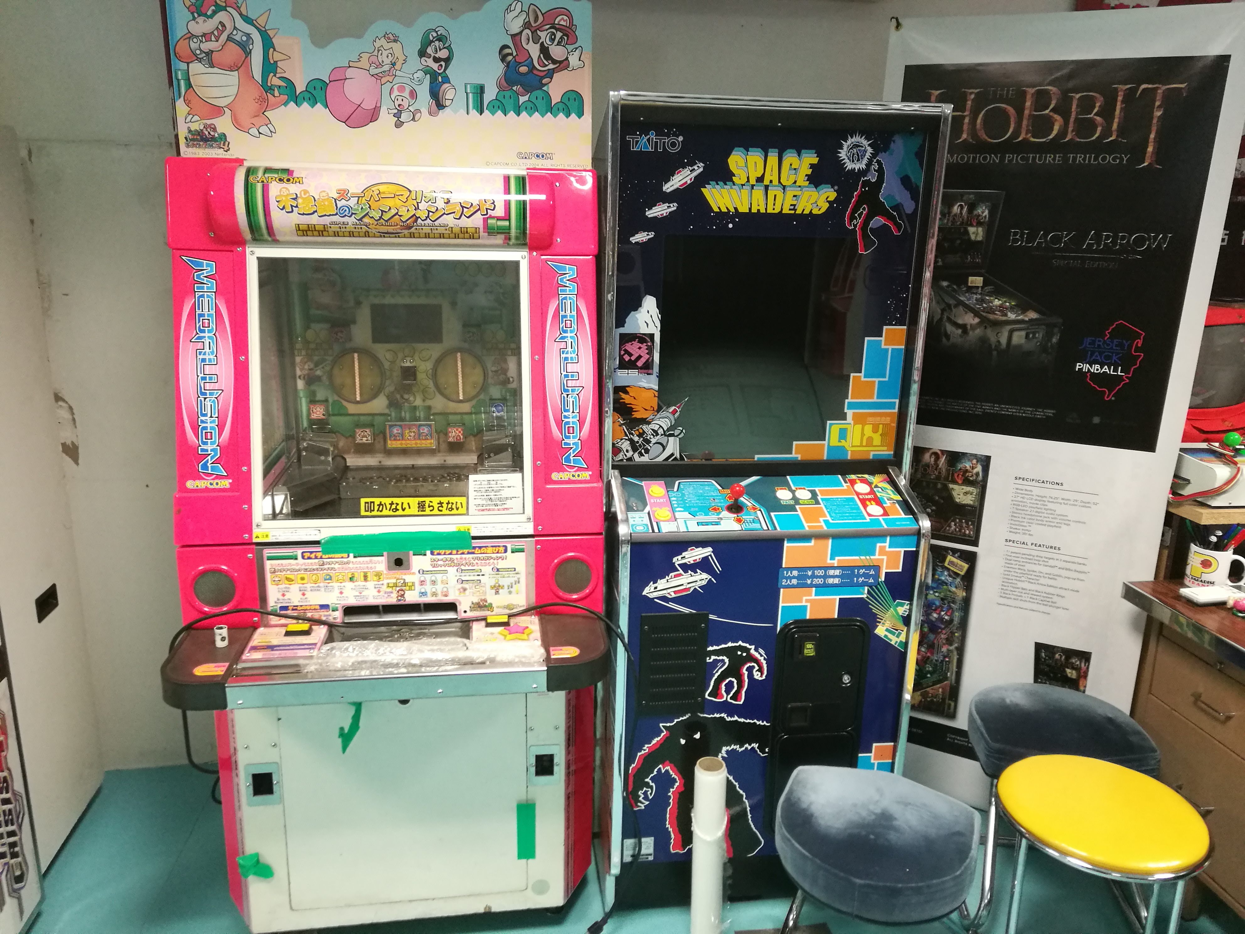 Une fois l’affaire conclue, nous avons eu droit à une visite de l’atelier qui servait aussi de stock à de nombreuses bornes qui attendaient patiemment leur tours pour retrouver une seconde jeunesse. Bien évidemment, très vite nous ne savions plus où donner de la tète tant il y avait de machines mythiques autour de nous. Nous avons discuter un long moments avec nos hôtes  au milieux d’engin estampillés Sega, SNK, Taito pour ne citer qu’eux, puis nous avons été conviés à faire la découverte du Show-room de la boutique. Et là les deux presque quarantenaires que nous sommes se sont transformés en gamins émerveillés devant une vitrine de Noel ! On découvrait pêle-mêle des machines plus belles les unes que les autres : des New Astro City aux couleurs custom, une vieille borne Space Invaders, une Sega Lindbergh, une Pop’n Music de Konami, de magnifique flippers…